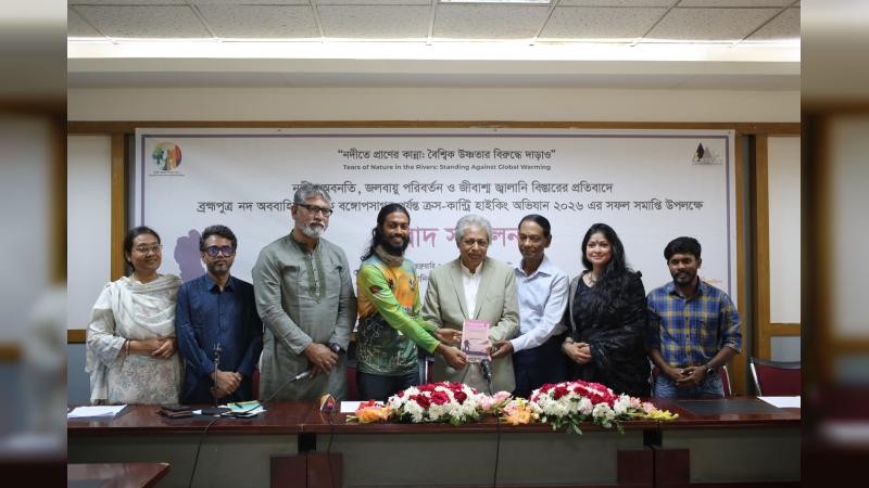 নদীর অবনতি, জলবায়ু পরিবর্তন ও জীবাশ্ম জ্বালানি বিস্তারের প্রতিবাদে আয়োজিত ‘নদীতে প্রাণের কান্না: বৈশ্বিক উষ্ণতার বিরুদ্ধে দাঁড়াও’ শীর্ষক ক্রস-কান্ট্রি হাইকিং অভিযানের অভিজ্ঞতা তুলে ধরতে এক সংবাদ সম্মেলন অনুষ্ঠিত হয়েছে। আজ সোমবার সকালে জাতীয় প্রেস ক্লাবের তফাজ্জল হোসেন মানিক মিয়া হলে পরিবেশবাদী নাগরিক সংগঠন ‘ধরিত্রী রক্ষায় আমরা (ধরা)’ এবং ‘বাংলা মাউন্টেনিয়ারিং অ্যান্ড ট্রেকিং ক্লাব (BMTC)’ যৌথভাবে এই সম্মেলনের আয়োজন করে।