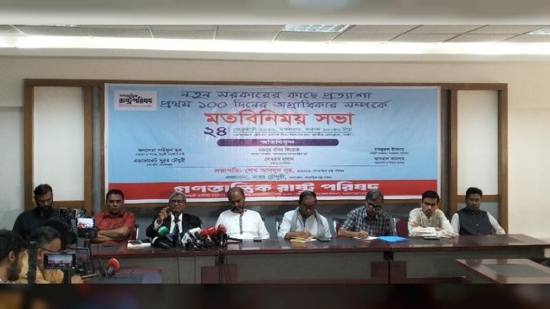 নতুন সরকারের প্রথম ১০০ দিনের অগ্রাধিকার নির্ধারণ ও জনআকাঙ্ক্ষার প্রতিফলন ঘটাতে আজ মঙ্গলবার (২৪ ফেব্রুয়ারি) সকাল ১০:৩০টায় জাতীয় প্রেসক্লাবের তোফাজ্জল হোসেন মানিক মিয়া মিলনায়তনে এক গুরুত্বপূর্ণ মতবিনিময় সভা অনুষ্ঠিত হয়। সভার আয়োজন করে গণতান্ত্রিক রাষ্ট্র পরিষদ।