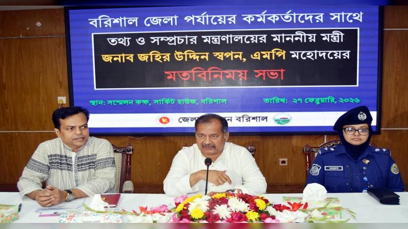 অবাধ তথ্যপ্রবাহ নিশ্চিত করতে সাংবাদিকসহ সংশ্লিষ্ট অংশীজনদের মতামতের ভিত্তিতে জবাবদিহির পরিধি নির্ধারণ করে গণমাধ্যমের স্বাধীনতা নিশ্চিত করা হবে বলে জানিয়েছেন তথ্যমন্ত্রী জহির উদ্দিন স্বপন। শুক্রবার বরিশাল সার্কিট হাউসে জেলা পর্যায়ের সরকারি কর্মকর্তাদের সঙ্গে সভা শেষে সাংবাদিকদের প্রশ্নের জবাবে তিনি এসব কথা বলেন।