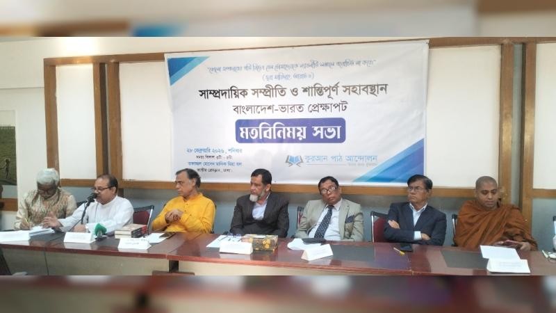 কুরআন পাঠ আন্দোলন-এর আয়োজনে 'সাম্প্রদায়িক সম্প্রীতি ও শান্তিপূর্ণ সহাবস্থান: বাংলাদেশ-ভারত প্রেক্ষাপট' শীর্ষক একটি মতবিনিময় সভা অনুষ্ঠিত হয় আজ ২৮ ফ্রেব্রুয়ারি ২০২৬ শনিবার বিকেল ৩ টায় জাতীয় প্রেসক্লাবের তোফাজ্জল হোসেন মানিক মিয়া হলে।