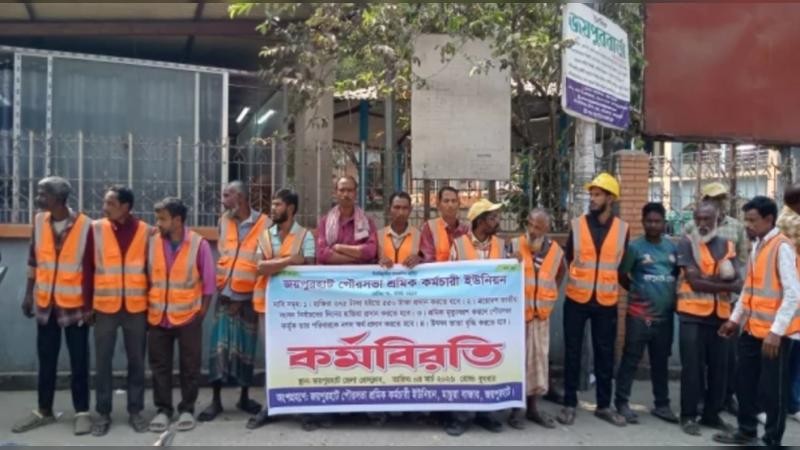 চার দফা দাবি আদায়ের লক্ষ্যে অনির্দিষ্টকালের জন্য কর্মবিরতি পালন করছেন জয়পুরহাট পৌরসভার শ্রমিক কর্মচারীরা। বুধবার (৪ মার্চ) সকাল থেকে কাজে না গিয়ে জয়পুরহাট পৌরসভার সামনে তারা এ কর্মসুচি পালন করেন। এতে পৌরসভার বিভিন্ন শাখার দৈনিক মজুরি ভিত্তিক শ্রমিক ও কর্মচারীরা অংশ নেন। এসময় অনেকে সড়কের উপর শুয়ে পড়েন।
