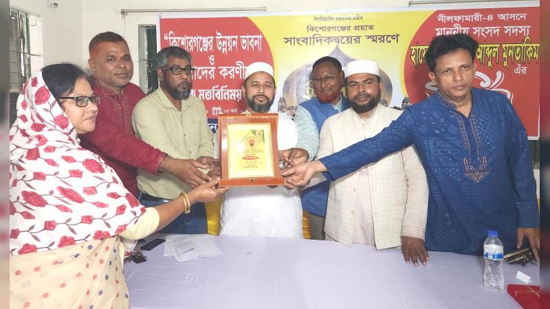 এর আগে প্রেস ক্লাব হলরুমে “কিশোরগঞ্জের উন্নয়নে ভাবনা ও আমাদের করণীয়” শীর্ষক সভা অনুষ্ঠিত হয়েছে। একই অনুষ্ঠানে প্রয়াত সাংবাদিকদ্বয়ের স্মরণে সভা, দোয়া, ইফতার মাহফিল হয়। এতে প্রধান অতিথি ছিলেন নীলফামারী-৪ আসনের সাংসদ হাফেজ মাওলানা আব্দুল মুনতাকিম। প্রেস ক্লাব সভাপতি আবু হাসান শেখ’র সভাপতিত্বে ও সাধারণ সম্পাদক শামীম হোসেন বাবু’র সঞ্চালনায় অনুষ্ঠানসমূহ হয়।