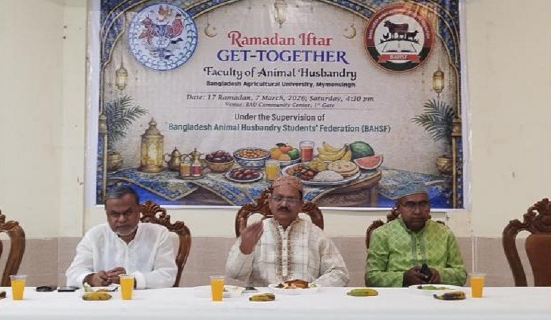 বাংলাদেশ কৃষি বিশ্ববিদ্যালয়ে (বাকৃবি) পশু পালন অনুষদের শিক্ষার্থীদের সংগঠন বাংলাদেশ এনিমেল হাজবেন্ড্রি স্টুডেন্টস ফেডারেশন (বিএএইচএসএফ)-এর উদ্যোগে ইফতার গেট-টুগেদার অনুষ্ঠিত হয়েছে।