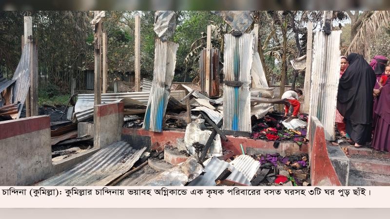 কুমিল্লার চান্দিনায় ভয়াবহ অগ্নিকান্ডে এক কৃষকের স্বপ্ন পুড়ে ছাঁই হয়ে গেছে। কয়েল এর আগুনে তিলে তিলে গড়া বসতঘর, আসবাবপত্র, নগদ টাকা ও স্বর্ণালংকার পুড়ে এখন নিঃস্ব ওই পরিবার।