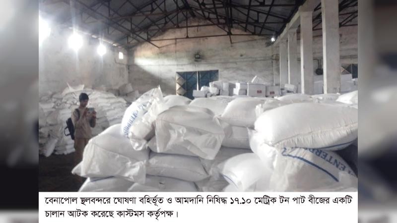 বেনাপোল স্থলবন্দর উদ্ভিদ সংগনিরোধ কেন্দ্রের উপ-পরিচালক আবু তালহা জানান, ভারত থেকে ৪৫ মেট্রিক টন ঘাসের বীজ ঘোষণা দিয়ে পণ্য চালানটি আমদানি করা হয়েছিল। পরে গোপন সংবাদের ভিত্তিতে চালানটি পরীক্ষা করে ঘোষণা বহির্ভূত ৫৬৭ বস্তায় ১৭.১০ মেট্রিক টন পাট বীজ আটক করা হয়েছে।