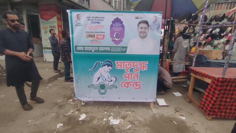 পঞ্চগড়ে ঈদ উপলক্ষে জমে উঠেছে ঈদ বাজার। প্রতিদিন পুরুষদের সাথে হাজারও নারী তাদের শিশুদের নিয়ে ঈদের কেনাকাটা করতে আসছেন। কিন্তু শিশুদের জন্য নিরাপদ কোনো মাতৃদুগ্ধ কেন্দ্র না থাকায় তাদের ঈদ কেনাকাটা করতে এসে বিড়ম্বনায় পড়তে হয়। মা ও শিশুদের এই বিড়ম্বনা থেকে মুক্তি দিতে পঞ্চগড়ের যুবদল নেতা মো. হায়াতুন আলম একটি অস্থায়ী মাতৃদুগ্ধ পান কেন্দ্র নির্মাণ করে দিয়েছেন।
