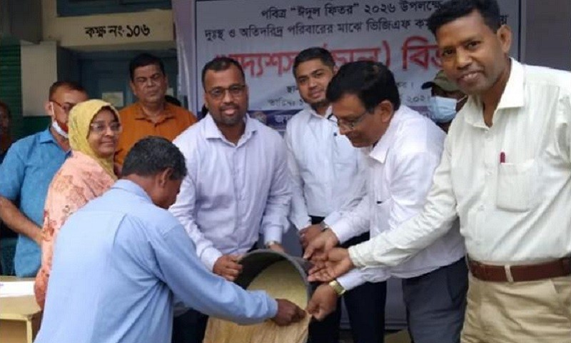 পবিত্র ঈদুল ফিতর উপলক্ষে মানবিক খাদ্য সহায়তা হিসেবে জয়পুরহাট জেলার ৫৬ হাজার ৬৯৬ দরিদ্র, অসহায় ও দুস্থ পরিবারের মাঝে বিতরণ করা হচ্ছে ১০ কেজি করে ভার্নারেবল গ্রুপ ফিডিং (ভিজিএফ) চাল ।