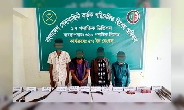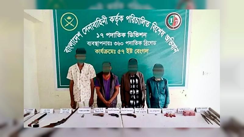 অভিযানে ৪ জন সন্ত্রাসীকে ১টি ৭.৬৫ মি.মি. বিদেশি পিস্তল, ২টি .২২ সিক্স-শট বিদেশি রিভলভার, ১টি বিদেশি একনলা বন্দুক, ১টি ১২ বোর পাইপ গান, ১ রাউন্ড ৭.৬৫ মি.মি. বিদেশি পিস্তলের অ্যামুনিশন, ৬ রাউন্ড .২২ রিভলভার অ্যামুনিশন, ৭ রাউন্ড ১২ বোর শটগান অ্যামুনিশন, ১৪০০ রাউন্ড ৫.৫ মি.মি. এয়ারগানের অ্যামুনিশন ও ১টি ৩৬ ইঞ্চি ধারালো তলোয়ারসহ দেশীয় বিভিন্ন প্রাণঘাতী অস্ত্র এবং মাদক ও মাদকদ্রব্য সেবনের উপকরণসহ গ্রেপ্তার করা হয়।