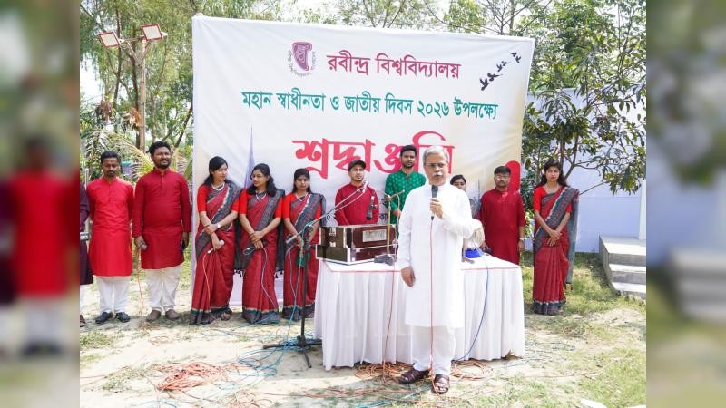রবীন্দ্র বিশ্ববিদ্যালয়ে মহান স্বাধীনতা ও জাতীয় দিবস যথাযথ মর্যাদায় উদযাপন করা হয়েছে। আজ সকাল ১০টায় বিশ্ববিদ্যালয়ের অস্থায়ী অ্যাকাডেমিক ভবন-৩ এ জাতীয় সংগীতের সাথে জাতীয় পতাকা উত্তোলনের মধ্য দিয়ে দিবসের সূচনা করা হয়। এরপর ১৯৭১ সালে মহান মুক্তিযুদ্ধে আত্মোৎসর্গকারী সকল শহিদের স্মৃতির প্রতি শ্রদ্ধা জানিয়ে রবীন্দ্র বিশ্ববিদ্যালয়ের অস্থায়ী অ্যাকাডেমিক ভবন-৩ এ স্থাপিত শহিদ মিনারে পুষ্পস্তবক অর্পণ করেন রবীন্দ্র বিশ্ববিদ্যালয়ের ভাইস-চ্যান্সেলর প্রফেসর ড. এস. এম. হাসান তালুকদার।