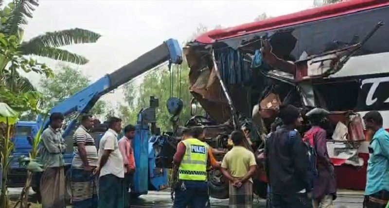 জানা যায়, সড়কের পাশে দাঁড়িয়ে থাকা একটি ট্রাককে পঞ্চগড় থেকে ঢাকাগামী ‘হেরিটেজ ট্রাভেলস’ নামের একটি যাত্রীবাহী বাস সজোরে ধাক্কা দেয়। এতে বাস ও ট্রাকের সামনের অংশ দুমড়ে-মুচড়ে যায় এবং ঘটনাস্থলেই বাসের হেলপার ও এক যাত্রীর মৃত্যু হয়।