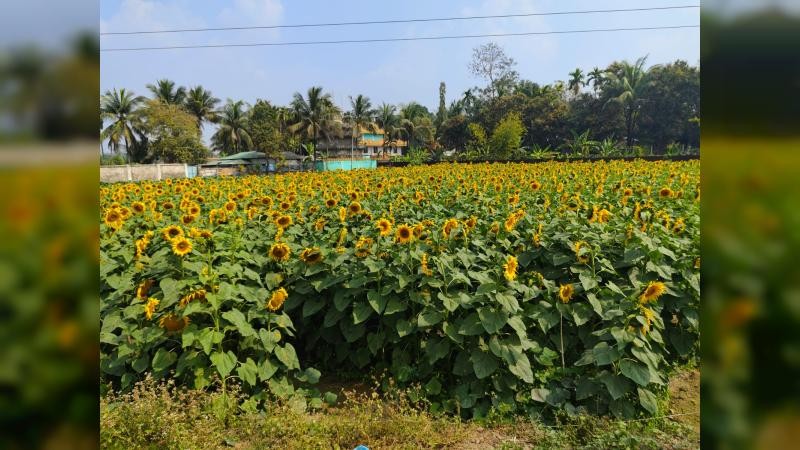 দিগন্ত বিস্তৃত সবুজের মাঠে হলুদ রঙের সমারোহ। পাখির চোখে দেখলেও যেন শেষ হবে না মাঠের বিস্তৃতি। পার্বত্য উপজেলা লামার গ্রামীণ পথ ধরে এগুতেই চোখে পড়বে অসংখ্য সূর্যমুখী ফুলের বাগান। সূর্যমুখী বেশ পরিচিত একটি ফুল। সূর্যের দিকে মুখ করে ফুটে বলে এর নাম সূর্যমুখী ফুল। এর বীজ একটি তেল জাতীয় ফসল। তেল ছাড়াও এ বীজ নানাভাবে খাওয়ার উপযোগী।