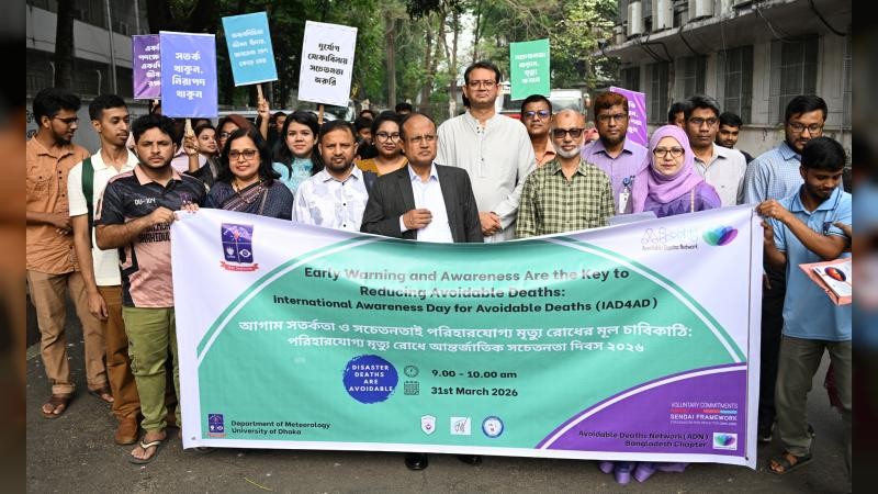 ‘আগাম সতর্কতা ও সচেতনতাই পরিহারযোগ্য মৃত্যু রোধের মূল চাবিকাঠি’ প্রতিপাদ্য নিয়ে ঢাকা বিশ্ববিদ্যালয়ে (ঢাবি) ‘পরিহারযোগ্য মৃত্যু রোধে আন্তর্জাতিক সচেতনতা দিবস’ পালন করেছে। এ উপলক্ষ্যে বিশ্ববিদ্যালয়ের প্রশাসনিক ভবন চত্বর থেকে এক র্যালিও বের করা হয়।