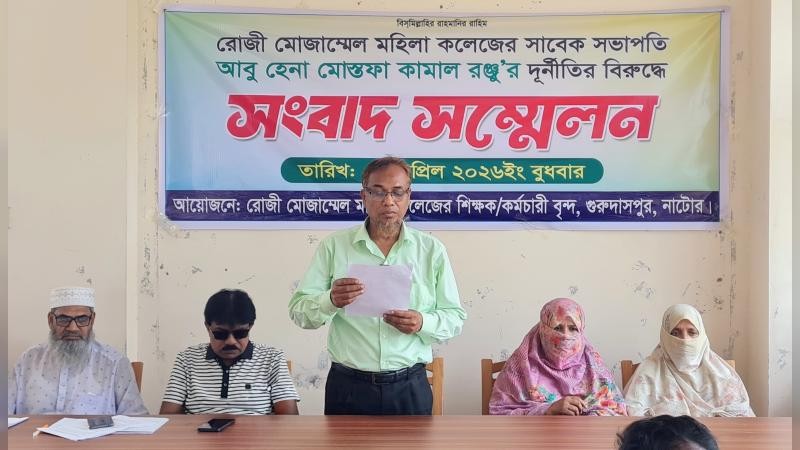গুরুদাসপুরে রোজী মোজাম্মেল মহিলা কলেজের সাবেক সভাপতি ব্যারিস্টার আবু হেনা মোস্তফা কামাল রঞ্জুর বিরুদ্ধে বিভিন্ন ফান্ডের টাকা আত্মসাৎসহ অনিয়ম-দুর্নীতির অভিযোগ করেছেন কলেজের শিক্ষকরা। বুধবার (১ এপ্রিল) দুপুরে উপজেলা মুক্তিযোদ্ধা কমপ্লেক্স মিলনায়তনে সংবাদ সম্মেলনে লিখিত বক্তব্যে এই অভিযোগ করা হয়। এসময় উপাধ্যক্ষ আবুল কালাম আজাদ, প্রভাষক রফিকুল ইসলাম, আব্দুস সামাদ, আনোয়ার হোসেনসহ ২৫ জন শিক্ষক-শিক্ষিকা উপস্থিত ছিলেন।