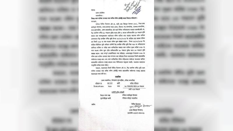এ বিষয়ে ভুক্তভোগী মো. রিয়াদুল ইসলাম ময়মনসিংহ জেলা রেজিস্ট্রার বরাবর একটি লিখিত অভিযোগ দায়ের করেছেন। অভিযোগ সূত্রে জানা গেছে, উপজেলার কান্দানিয়া মৌজার ৯৯৮ বিআরএস খতিয়ানের ৭৮১০ হাল দাগে ছয়জনের যৌথ মালিকানাধীন ৯০ শতক ভূমির ওপর গত ২৬ আগস্ট স্থানীয় ইউনিয়ন ভূমি অফিসে ভুক্তভোগীরা একটি নালিশি অভিযোগ দেন। এরপরও দাখিলা না পেয়ে জালিয়াতচক্র জালিয়াতির আশ্রয় নিয়ে জাল দাখিলা সৃষ্টি করে। ফুলবাড়িয়া সাব-রেজিস্ট্রি অফিসে গত ৮ ফেব্রুয়ারি ৮৬৯ নং সাফ কবলা দলিল মূলে যৌথ মালিকানাধীন ৯০ শতক ভূমির মধ্যে ১৩ শতাংশ ভূমি হস্তান্তর করেন দাতা আসাদুজ্জামান। একই কায়দায় এর আগেও কান্দানিয়া মৌজার ৩০৩৭ দাগে আরও একটি দলিল সম্পাদনের তথ্য পাওয়া গেছে, যার দলিল নম্বর ৮৬৮।