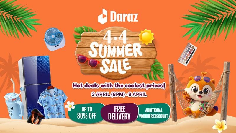 অনলাইন মার্কেটপ্লেস দারাজ বাংলাদেশ নিয়ে এসেছে বহুল প্রতীক্ষিত ‘৪.৪ সামার সেল’। ৩ এপ্রিল শুরু হওয়া এই সেল চলবে ৮ এপ্রিল পর্যন্ত। সীমিত সময়ের এই ক্যাম্পেইনে থাকছে আকর্ষণীয় ডিসকাউন্ট, নামী ব্র্যান্ডের সাথে কোলাবরেশন এবং দেশজুড়ে নিরবচ্ছিন্ন অনলাইন শপিংয়ের সুযোগ।