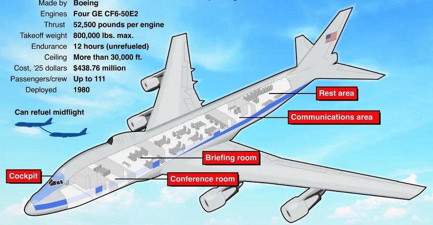 প্রসঙ্গত, যুক্তরাষ্ট্রের কাছে এ ধরনের মোট চারটি Boeing E-4B Nightwatch বিমান রয়েছে, যা নিয়মিতভাবে প্রস্তুতি বজায় রাখতে ব্যবহার করা হয়।
