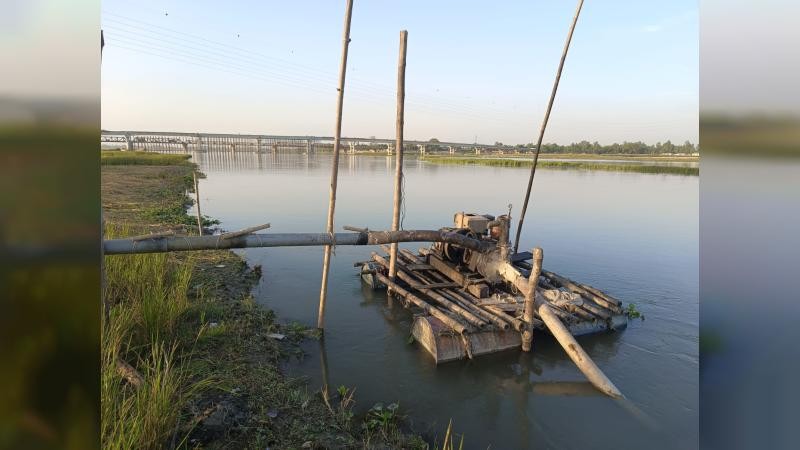 কুড়িগ্রামের ভূরুঙ্গামারীতে দুধকুমার নদের উপর নির্মাণাধীন সোনাহাট সেতুর পাশে অবৈধভাবে ড্রেজার মেশিন বসিয়ে অবাধে বালু তুলে বিক্রি করছে একটি প্রভাবশালী মহল। বালু উত্তোলনের ফলে একদিকে নির্মাণাধীন সেতুটি হুমকির মুখে পড়েছে। অন্যদিকে মাত্র কয়েক মিটারের মধ্যে বসতি, স্থাপনা আর ফসলি জমি থাকায় আগামী বর্ষা মৌসুমে বিপুল পরিমাণ আবাদি জমি ধসে নদীগর্ভে বিলিন হবার আশংকা করছেন স্থানীয় বাসিন্দারা।