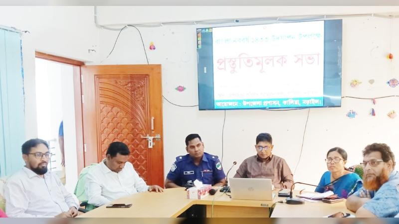 নড়াইলের কালিয়া উপজেলায় আসন্ন বাংলা নববর্ষ ১৪৩৩ উদযাপন উপলক্ষে প্রস্তুতিমূলক সভা অনুষ্ঠিত হয়েছে। বুধবার (৮ এপ্রিল) সকাল ১১টায় কালিয়া উপজেলা পরিষদ সম্মেলন কক্ষে উপজেলা নির্বাহী অফিসার (ইউএনও) মো. জিন্নাতুল ইসলামের সভাপতিত্বে সভা অনুষ্ঠিত হয়।