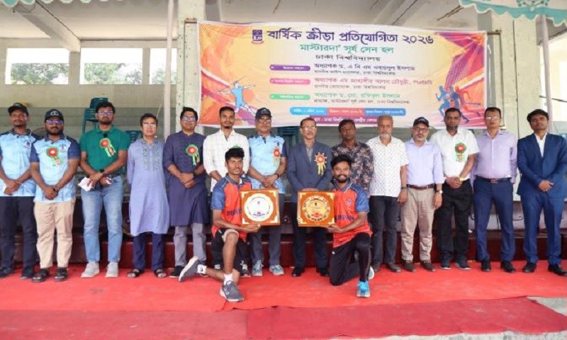 ঢাকা বিশ্ববিদ্যালয়ের (ঢাবি) মাস্টার দা’ সূর্যসেন হলের বার্ষিক ক্রীড়া প্রতিযোগিতায় বিশ্ববিদ্যালয়ের লোক প্রশাসন বিভাগের শিক্ষার্থী মো. সুবহান আলী হৃদয় চ্যাম্পিয়ন এবং বাংলা বিভাগের শিক্ষার্থী মো. নাফিজ খান রানার্স-আপ হয়েছেন।