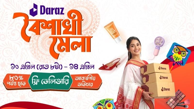 ই-কমার্স প্ল্যাটফর্ম দারাজ বাংলাদেশ, উৎসবের আমেজে পহেলা বৈশাখ উদযাপন করতে আয়োজন করেছে ‘দারাজ বৈশাখী মেলা’। দেশজুড়ে অনলাইন ক্রেতাদের মাঝে বাংলা নববর্ষের আনন্দ ছড়িয়ে দিতে ১০ এপ্রিল রাত ৮টা থেকে শুরু হয়ে এই ক্যাম্পেইনটি চলবে ১৪ এপ্রিল, ২০২৬ পর্যন্ত। ক্যাম্পেইন চলাকালীন থাকছে ৮০% পর্যন্ত ফ্ল্যাশ সেল, এক্সক্লুসিভ ভাউচার এবং বিভিন্ন ক্যাটাগরির পণ্যে ফ্রি ডেলিভারি সুবিধা, যা বাংলা নতুন বছরের কেনাকাটাকে করবে আরও আনন্দদায়ক।