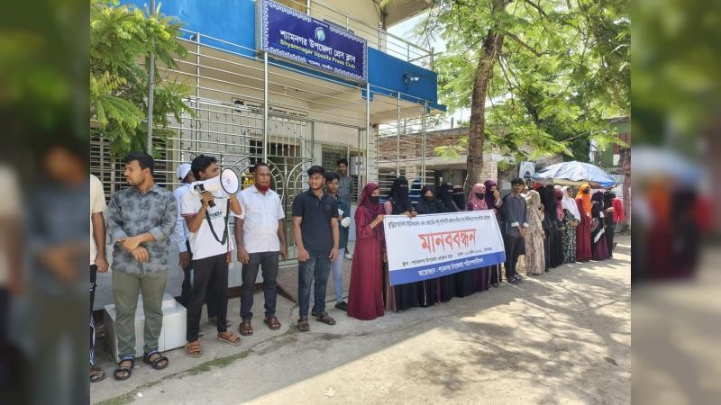 সাতক্ষীরার শ্যামনগর উপজেলার বুড়িগোয়ালিনী ইউনিয়নের ৬নং ওয়ার্ডের পূর্ব দুর্গাবাটি হুলায় নদীর চরে নির্বিচারে গাছ নিধনের প্রতিবাদে মানববন্ধন অনুষ্ঠিত হয়েছে। রোববার (১২ই এপ্রিল) বেলা ১১টায় শ্যামনগর উপজেলা প্রেসক্লাব চত্বরে উপজেলার বিভিন্ন পরিবেশবাদী সংস্থার স্বেচ্ছাসেবীরা এ মানববন্ধনের আয়োজন করে।