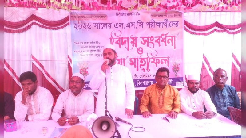 তিনি সোমবার বিকালে কিশোরগঞ্জ পাবলিক স্কুলের এসএসসি পরীক্ষার্থীদের বিদায় সংবর্ধনা ও দোয়া মাহফিলে প্রধান অতিথির বক্তব্যে এ কথা বলেন। কিশোরগঞ্জ পাবলিক স্কুল চত্ত্বরে বিদ্যালয়টির ২০২৬ সালের এসএসসি পরীক্ষার্থীদের বিদায় সংবর্ধনা ও দোয়া মাহফিল অনুষ্ঠিত হয়।