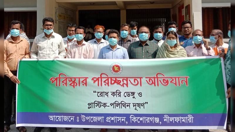 নীলফামারীর কিশোরগঞ্জে পরিস্কার পরিচ্ছন্নতা অভিযান শুরু করলেন নবাগত ইউএনও আরিফুর রহমান। “রোধ করি ডেঙ্গু ও প্লাস্টিক-পলিথিন দূষণ” স্লোগান নিয়ে সোমবার উপজেলা পরিষদে আনুষ্ঠানিকভাবে এ পরিস্কার পরিচ্ছন্নতা অভিযান উদ্বোধন করা হয়।