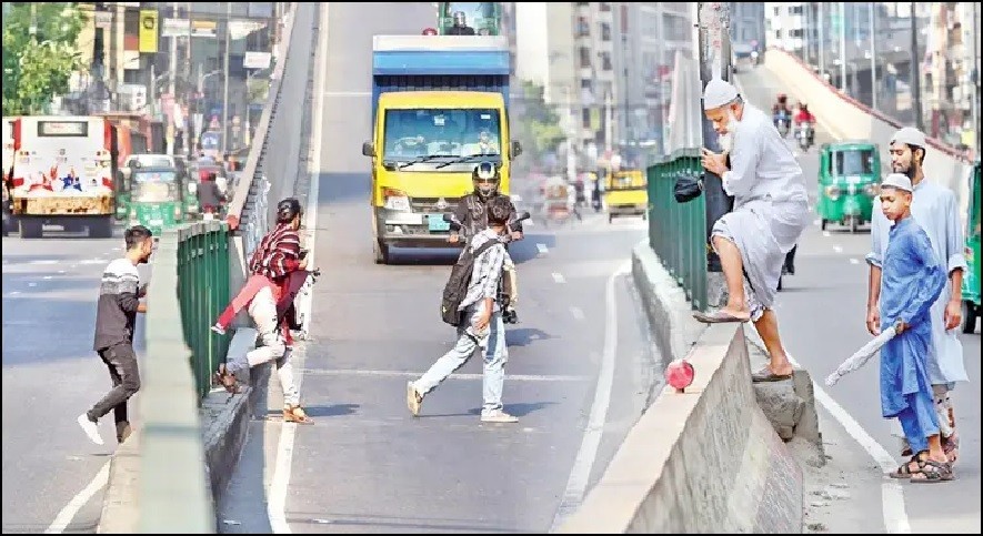 রাজধানীর সড়কে শৃঙ্খলা ফেরাতে কঠোর অবস্থানে যাচ্ছে ঢাকা মেট্রোপলিটন পুলিশ (ডিএমপি)। জেব্রা ক্রসিং, ফুট ওভারব্রিজ বা আন্ডারপাস ব্যবহার না করে রাস্তা পার হলে পথচারীদের বিরুদ্ধে জেল বা জরিমানার বিধান কার্যকরের কথা জানিয়েছে সংস্থাটি।