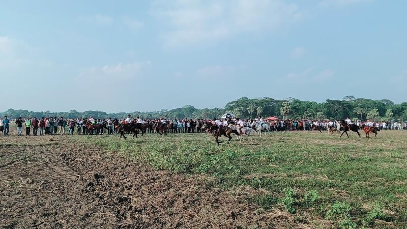 দৌড় শুরুর আগেই মাঠজুড়ে দর্শকদের উপচে পড়া ভিড় লক্ষ্য করা যায়। পরিবার-পরিজন নিয়ে গ্রামীণ এ ঐতিহ্যবাহী আয়োজন উপভোগ করতে ভিড় করেন নানা বয়সী মানুষ। প্রতিযোগিতা চলাকালে ঘোড়ার দ্রুতগতির সঙ্গে দর্শকদের উল্লাস ও করতালিতে মুখর হয়ে ওঠে পুরো এলাকা।