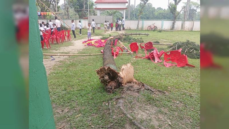 এ বিষয়ে স্থানীয় বাসিন্দা ও ইউনিয়ন বিএনপির সাধারণ সম্পাদক গাজী মনির বলেন, “আমি নিজেও অনুষ্ঠানে উপস্থিত ছিলাম। হঠাৎ একটি বড় গাছ উপড়ে পড়ে তিনজন ছাত্র আহত হয়। তবে অল্পের জন্য বড় ধরনের দুর্ঘটনা থেকে রক্ষা পেয়েছে শতাধিক শিক্ষার্থী।”