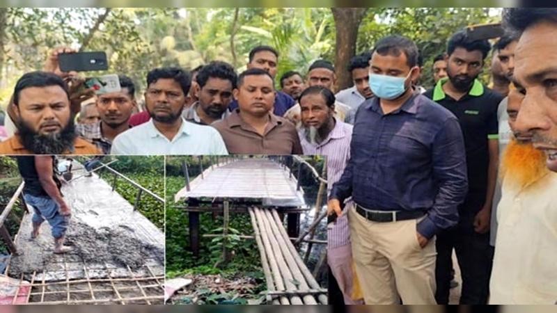 তিনি সরেজমিন পরিদর্শন শেষে ব্রীজের ঢালাইয়ে বাঁশের কঞ্চি ব্যবহারের সত্যতা পেয়ে আমাকে অবহিত করেছেন। ব্রীজের স্ট্রাকচার বিগত অর্থবছরে উপজেলা পরিষদের ১% এর অর্থায়নে নির্মান করা হয়েছিল। কিন্তু ওপরের ঢালাই করা হয়নি। এই অর্থ বছরে ব্রীজের ঢালাই করার জন্য আবেদন এসেছে, আমরা কোন অর্থ বরাদ্দ বা অনুমোদন করিনি। স্থানীয় একজন ইউপি সদস্য নিজ উদ্যোগে ও এলাকাবাসীর সহায়তায় ঢালাই করেছে এবং ব্রীজের শেষ অংশে এসে রডের পরিবর্তে বাঁশের ব্যবহার করেছে। উপজেলা প্রকৌশলী আমাকে বলেছেন, বাঁশের ব্যবহারের কারনে স্ট্রাকচার ও ঢালাই যথেস্ট মজবুত হয়নি। তাই ঢালাই ভেঙে সরকারি নিয়মের মধ্যে থেকে ব্রীজটি আমরা নির্মান করে দিবো। আর ভবিষ্যতে এই ধরনের কাজ করে যে আমাদের উপজেলার ভাবমূর্তি ক্ষুন্ন করার চেষ্টা করবে তাদের বিরুদ্ধে আইনানুগ ব্যবস্থা নেওয়া হবে।