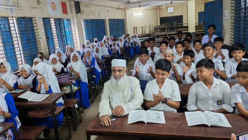 তিনি অনুমতি নিয়ে ক্লাসে প্রবেশ করে ছাত্রদের সাথে ব্যাঞ্চে বসেন এবং শিক্ষিকাকে ক্লাস চলমান রাখতে বলেন। এসময় আর কাউকে ক্লাসে প্রবেশ করতে নিষেধ করেন। ক্লাসের এক পর্যায়ে এক ছাত্রীর কাছে কবি নজরুল ইসলামের 'কুলি মজুর' কবিতাটির আবৃত্তি শুনেন। শেষদিকে এমপি দাড়িয়ে শিক্ষার্থীদের উদ্যেশ্যে বিভিন্ন বিষয়ে দিকনির্দেশনামূলক বক্তব্য দেন।