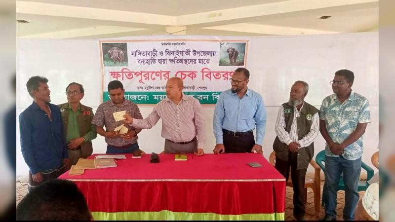 অনুষ্ঠানে নালিতাবাড়ী ও ঝিনাইগাতী উপজেলার সীমান্তবর্তী গারো পাহাড়ি এলাকায় বন্যহাতি দ্বারা ঘরবাড়ি, সবজি ও ফসল আবাদে ক্ষতিগ্রস্থ ৫৩ জনকে ৮ লাখ ৫৯ হাজার টাকার চেক বিতরণ করা হয়।
