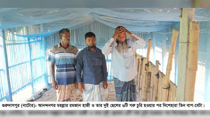 নাটোরের গুরুদাসপুরে একই পরিবারের তিন বাপ-বেটার ছয়টি গরু চুরি যাওয়ার ঘটনা ঘটেছে। এ নিয়ে উপজেলার আনন্দনগর মহল্লাবাসীর মধ্যে আতঙ্ক বিরাজ করছে। মঙ্গলবার রাত ২টা থেকে ৩টার মধ্যে সংঘবদ্ধ একটি চক্র গরুগুলো চুরি করে। এতে সর্বশান্ত হয়ে পড়েছে পরিবারটি।