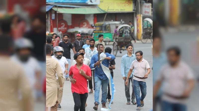 অন্য ছবিতে দেখা যায়, সাদা জার্সি ও মাথায় টুপি পড়া যুবক রাম দা হাতে, আরেকজন লুঙ্গি, গেঞ্জি পড়ে লাঠি হাতে ও অন্যজন কালো শার্ট ও প্যান্ট পড়ে প্লাস্টিকের পাইপ হাতে দৌঁড়াচ্ছেন। এছাড়া তাদের পেছনে থাকা অনেকের হাতেই ছিল লাঠি ও প্লাস্টিকের পাইপ।