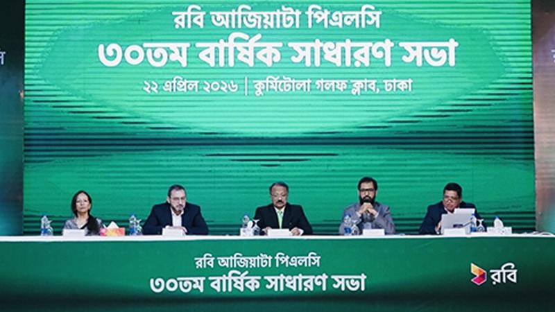 রবি আজিয়াটা পিএলসির ৩০তম বার্ষিক সাধারণ সভা (এজিএম) বুধবার রাজধানীর কুর্মিটোলা গলফ ক্লাবে অনুষ্ঠিত হয়েছে। সভায় সভাপতিত্ব করেন রবির পরিচালনা পর্ষদের চেয়ারম্যান থায়াপারান সাঙ্গারাপিল্লাই। স্বতন্ত্র পরিচালক নাসির উদ্দিন আহমেদ ও নাসরীন সাত্তার, ব্যবস্থাপনা পরিচালক ও প্রধান নির্বাহী কর্মকর্তা (সিইও) জিয়াদ সাতারাসহ কোম্পানির অন্যান্য গুরুত্বপূর্ণ নির্বাহীরা সভায় অংশগ্রহণ করেন।