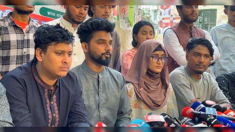 বৃহস্পতিবার (২৩ এপ্রিল) বিকেলে ঢাকা বিশ্ববিদ্যালয়ের মধুর ক্যানটিনের সামনে আয়োজিত এক সংবাদ সম্মেলনে সংগঠনটির কেন্দ্রীয় মুখপাত্র সিনথিয়া জাহিন আয়েশা এ দাবি জানান। অভিযুক্তরা হলেন- বৈষম্যবিরোধী ছাত্র আন্দোলনেরে কেন্দ্রীয় সভাপতি রিফাত রশিদ, সাংগঠনিক সম্পাদক মঈনুল ইসলাম, মুখ্য সমন্বয়ক হাসিব আল ইসলাম।