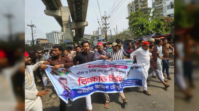 ফেসবুকে দেওয়া এক পোস্টে আওয়ামী লীগের সাবেক সাংগঠনিক সম্পাদক ব্যারিস্টার মহিবুল হাসান চৌধুরী নওফেল দাবি করেন, নগরের ষোলশহর দুই নম্বর গেট এলাকায় বাংলাদেশ আওয়ামী লীগের ওপর নিষেধাজ্ঞা প্রত্যাহার এবং রাজবন্দীদের মুক্তির দাবিতে এ বিক্ষোভ মিছিল অনুষ্ঠিত হয়েছে। তিনি আরও উল্লেখ করেন, তার নির্দেশে চট্টগ্রাম মহানগর আওয়ামী যুবলীগের সহ-সভাপতি ও কাউন্সিলর মো. ওয়াসিম উদ্দিন চৌধুরীর উদ্যোগে মহানগর যুবলীগ ও ছাত্রলীগের নেতাকর্মীরা মিছিলটি আয়োজন করেন।