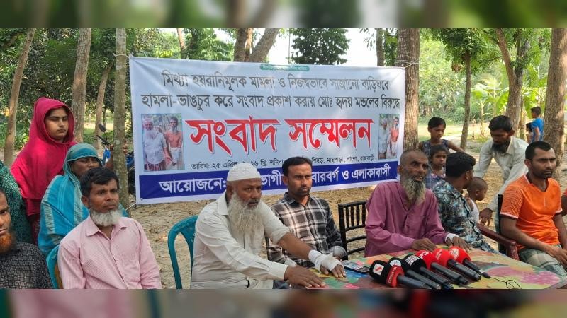 রাজবাড়ীর পাংশা উপজেলার শিহড় গ্রামে মিথ্যা মামলা দায়ের ও নিজেরা বাড়িঘরে হামলা- ভাঙচুরের নাটক সাজিয়ে মামলা দেওয়ার অভিযোগ তুলে সংবাদ সম্মেলন করেছে এলাকাবাসী।