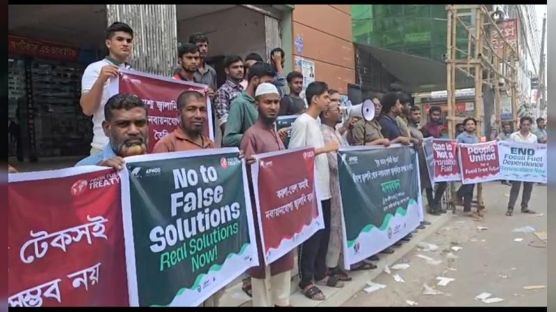 বক্তারা বলেন, জীবাশ্ম জ্বালানি বন্ধ করে পরিবেশবান্ধব নবায়নযোগ্য জ্বালানিতে রূপান্তর করতে হবে।