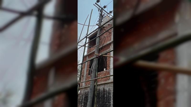 খাগড়াছড়ির মানিকছড়ি উপজেলা সদরের পাঞ্চারামপাড়া এলাকায় সরকারি বিদ্যুতের খুঁটি ঘেঁষে ভবন নির্মাণ করছে সততা পোল্ট্রি ফার্মের মালিক মো. ইকবাল হোসেন।