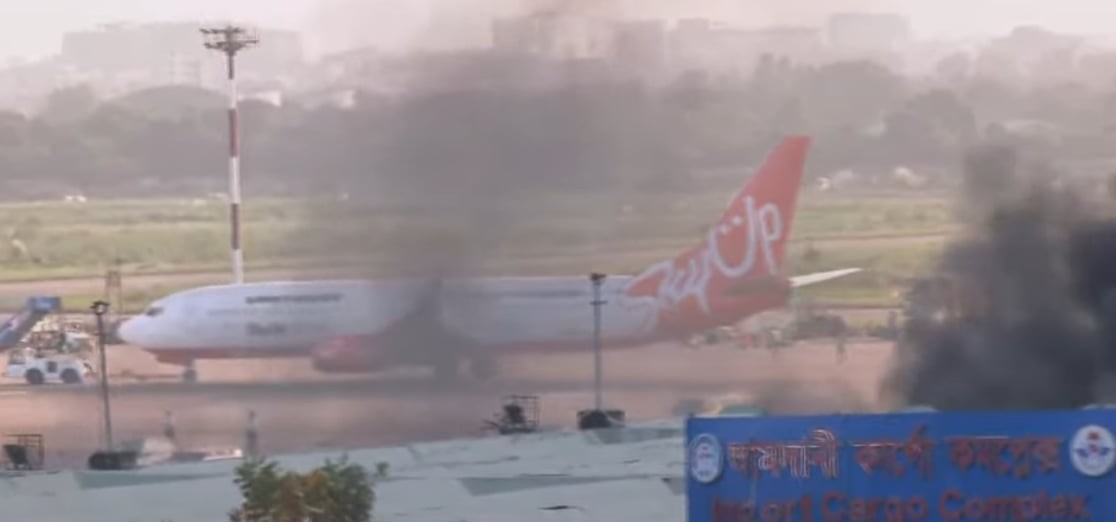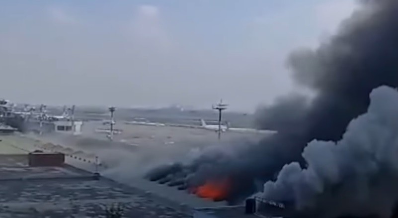 কালো ধোঁয়ায় ছেয়ে গেছে পুরো বিমানবন্দর এলাকা, শোনা যাচ্ছে বিস্ফোরণের শব্দ