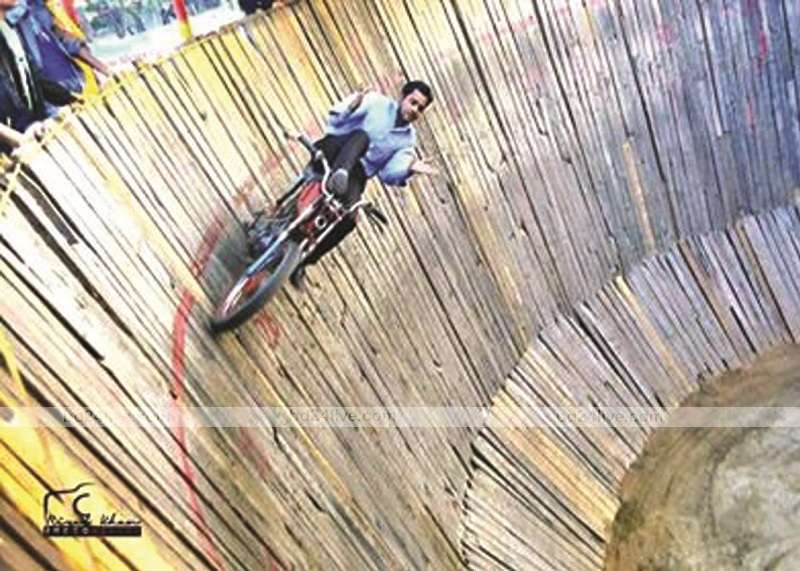 মোটরসাইকেল স্টার্ট দিয়েই ভূমিতে দুই-চারবার ঘুড়েন। এরপরেই মোটরসাইকেল নিয়ে কাঠের দেওয়ালে উঠেন। ধীরেধীরে গতি বাড়ান, চোখের পলকেই বৃত্তাকার দেওয়ালে ঘুরতে থাকেন। কখনো উপরে, কখনো মাঝখানে, কখনো দুহাত উপরে, কখনো দুপা হ্যান্ডেলে। খেলা দেখান দর্শকদের মাতান বেশ স্বাচ্ছন্দে। উৎসুক দর্শকের অনেকেই ততোক্ষণে চোখ বন্ধ করে ফেলেন। চোখের সামনে এরকম ভয়ঙ্কর খেলা দেখার সাহস বা কয়জনের আছে?
