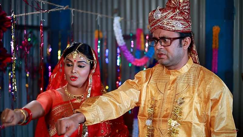 জনপ্রিয় অভিনেত্রী মুক্তিকে বিয়ে করেই আখম হাসান বেশ বিপদে পরেছেন! বউ বাসর রাতে স্বামীকে জোর করে শপথ পাঠ করালেন মুক্তি। পড়ালেন 'সবার উপর বউ, তার উপরে নাই কেউ...'! না বাস্তব জীবনে না এটি আসলে সম্প্রতি মুক্তিপ্রাপ্ত একটি সুপার কমেডি নাটকের কাহিনী।