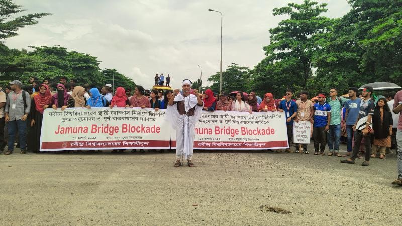 রবীন্দ্র বিশ্ববিদ্যালয়ের স্থায়ী ক্যাম্পাস নির্মাণের ডেভেলপমেন্ট প্রজেক্ট প্রপোজালের (ডিপিপি) দাবি আগামী ৪৮ ঘণ্টার মধ্যে পূরণ না হলে ঢাকার সঙ্গে উত্তরাঞ্চলের সড়ক যোগাযোগ বিচ্ছিন্ন করার ঘোষণা