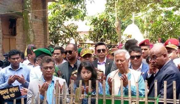Dr Yunus also offered ziarat at Sayeed’s grave and talked to his family members for some times after he arrived in Babanpur village of Pirganj upazila this morning.