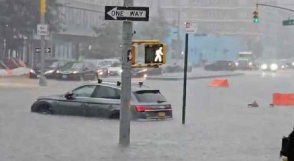 Images from around New York showed cars half-submerged and traffic snarled, with some major roads completely blocked.