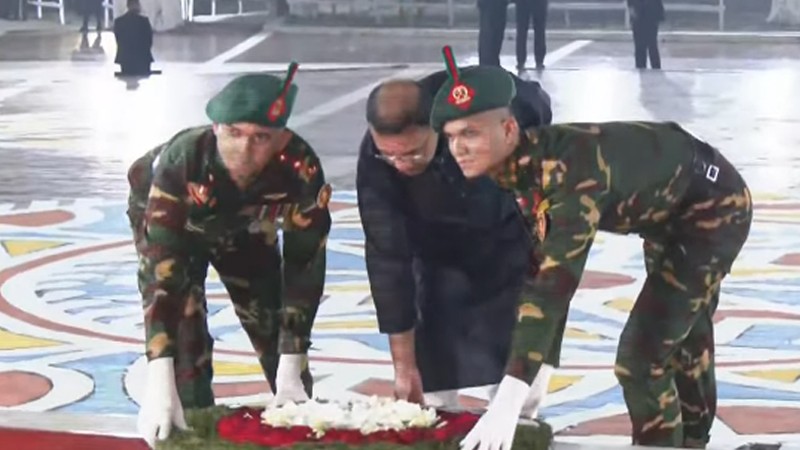 He paid tribute to the martyrs by laying a wreath at the Central Shaheed Minar in the first hour of Ekushey on Saturday (February 21).