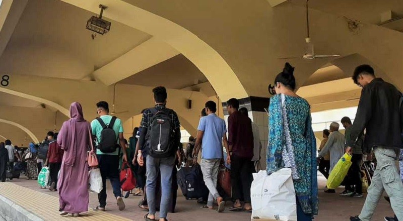 Monday (March 16) marked the last working day before Eid. Following the end of the workday, a surge of people heading home was observed on roads and at bus terminals in the capital and various other cities. Thousands have begun leaving the capital to share the joy of Eid with their families and relatives.